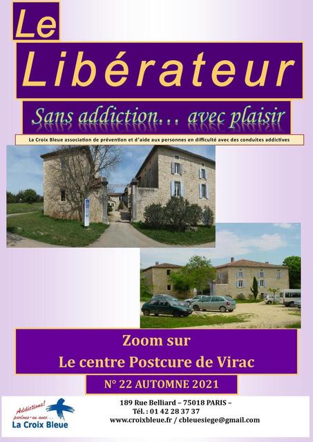 Dans ce Libérateur, vous découvrirez les coulisses d’un centre addicto (son fonctionnement, la prise en charge, le rôle des accompagnants …) mais aussi quelques conseils pour vivre au mieux son séjour. Cette édition reviendra également sur la dernière Rencontre des Responsables et l’Assemblée Générale qui se sont tenues à Bourges en juin et vous retrouverez, bien évidemment, toute l’actualité des sections.